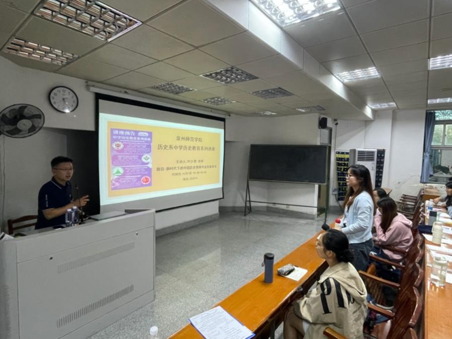 2024年11月1日下午,我系“名师讲堂”第三期讲座在文A213教室成功举办。本次讲座特邀泉州教育科学研究院叶少勇老师担任主讲嘉宾,由历史系主任刘智豪主持,吸引了60余名历史系学生积极参与。