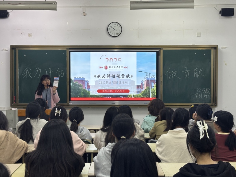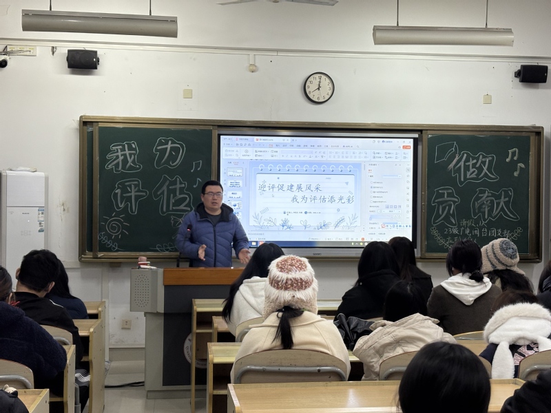 依托学校评估工作契机,各辅导员通过讲解活动背景、阐释教学审核评估内容及意义、普及评估相关知识,深化了同学们对学校审核评估工作的理解。部分班级还组织知识竞答和观看专题视频,“围绕‘学生如何积极参与教学评估'展开热烈讨论”。