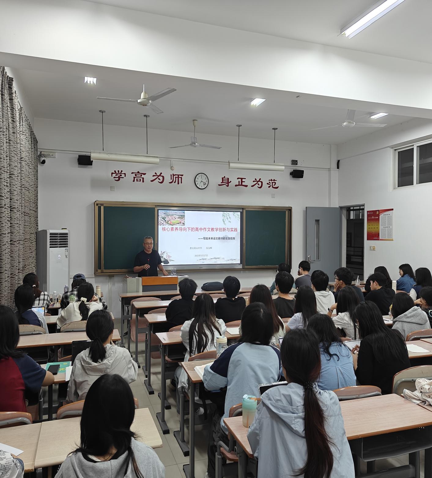 张老师最后强调,“得天下英才而教育之乃人生一大乐事也”,寄语中文系学子们要做学习型教师,守护对世界的敏感与真诚,在高中作文教学中践行核心素养理念,推动教学创新发展。