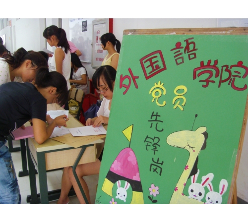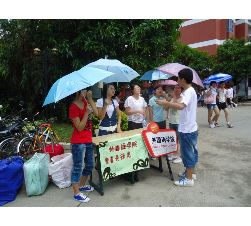 9月11日,正值2010级新生报到之际,我院在校党委的领导下,根据学校“创先争优”活动的统一部署,在迎接2010级新生的工作中广泛开展创建先进基层党组织、争当优秀共产党员的活动,依例设置了“党员先锋岗”,发挥党员先锋模范作用,为新生提供服务。