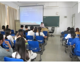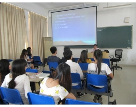 10月30日下午,福建师范大学教授、硕士生导师、视听说教研室主任戴聪腾教授在外院508教室做了主题为“影响大学生提高听力诸因素”的讲座,外国语学院2013级的学生参与听讲。