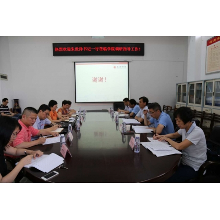 6月12日下午校党委朱世泽书记带领校党政办、组织部、人事处负责人莅临外国语学院调研指导工作,学院党政领导、各科室负责人参加会议。