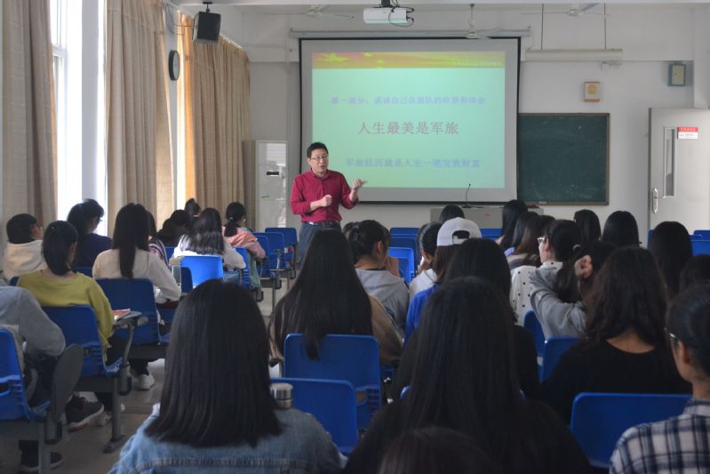 活动伊始,杨辉老师结合自身16年的入伍经历和女兵宋玺的事迹,向同学们分享了参军入伍带给他的人生感悟。他告诉同学们军营能够造就品质、磨炼意志,能够给予青年们不一样的人生体验。随后,向同学们详细地介绍了应征入伍的具体步骤,使同学们清楚地了解了应征入伍的程序。紧接着,向同学们详细解读了大学生应征入伍的报名条件、报名方式以及各项优惠政策和奖励政策,并鼓励同学们积极投身国防建设。最后,此次宣讲活动在阵阵掌声中圆满结束。