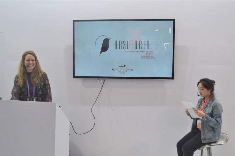 据了解,我院前期积极启动志愿者招募工作,经过报名、审核和选拔,将志愿者分为接待组、展务组、咨询台组、翻译组及馆外组五个小组。展会期间,外院学子积极继承和发扬我院志愿服务的优良传统,各组成员分工活跃在馆外人工通道、入场证打印处、门禁、馆内秩序导引处、咨询台、品牌展区、特色馆等地。其中,在入场通道处,数名志愿者为国际友人无障碍办理入场证,并细心指引楼层、答疑解惑。而在主会场内的“一带一路”国际品牌馆,翻译组成员以流利规范的英语口语、严谨细致的翻译志愿服务,为外国客商与各参展企业的交流与合作提供良好的保障。值得一提的是,在2020春夏流行趋势展示馆,我院两位学生作为专门的随行翻译官,为两位意大利女设计师提供电视台媒体采访翻译、宣讲会交传翻译、现场产品解说翻译等多项工作,语境翻译到位、多方洽谈流畅、双语交流氛围良好。