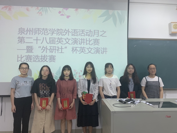 此次英语演讲比赛初赛旨在为学生提供展示外语能力、沟通能力与思辨能力的综合平台,同时为2019年“外研社杯”英文演讲比赛选拔出优秀选手。据悉,此次演讲比赛以“My Big Story in 2049”为主题,由“定题演讲”、“即兴演讲”、“评委提问”、“评委点评”四部分组成,每三名选手演讲结束后宣布一次成绩。同学们以流利的口语,昂扬的面貌展示着蓬勃向上、积极进取的精神风貌。最后,在场评委对选手们的表现进行细致的点评并给予中肯的意见,激励选手们继续努力,同时号召在场其他的同学踊跃参加此类活动。经过2个多小时的激烈角逐,本次大赛圆满落下帷幕。其中,2017级双语一班李天哲同学、2017级双语二班黄安慧同学以及2017级英教二班王倩同学取得一等奖的好成绩。