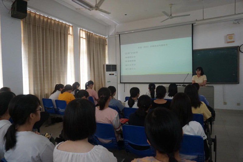 此次教育大会的主题引用了出自著名教育家陶行知的名言:“学高为师,身正为范”,旨在让同学们明白身正才能为人师范之道理。会上,陈奕希老师围绕“四有好老师”这一主题向同学们细致传授为人师表应有的品德素养,其中包括:有理想信念、有高尚情操、有扎实学识及有仁爱之心。陈老师简洁精炼的言语,道出了作为一名合格教师除了要有扎实的专业知识、较高的文化水准外,更重要的是应有良好的道德素质。教书兼爱人,拥有一颗热忱的心,才能更好地传道授业而解惑也。教师是一个卓越的工作,老师是一声神圣的称呼,身在其位,定要谋其政、达其根本。