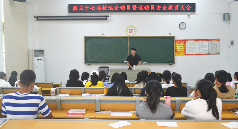 为了迎接即将到来的校运会,鼓舞激励运动员们以饱满的热情积极参赛,10月15日,我院于外文楼112教室举行运动会安全动员大会。此次大会由辅导员老师陈杰松主讲,我院全体运动员参加了此次动员大会。