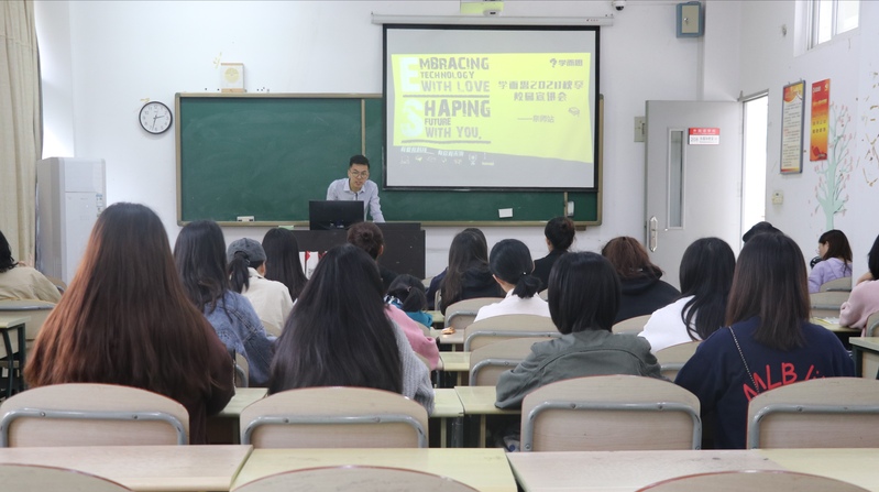 首先,张老师从学而思的成立介绍到近年来的发展,从会场情况看,张老师的介绍对同学们有很强的吸引力。随接着,张老师向同学们讲述了作为一个遍布全国的优质企业,学而思公司的优势在于具有良好的工作环境、优渥的薪资待遇和不定期开展的福利活动等。公司授课的模式为小班授课、在线直播及随时退费三大特色模式,公司每年都会有丰富多彩的团建活动,如生日会等,以及在假期举办的游学活动,即组织老师同学到剑桥大学、耶鲁大学等世界著名高校学习参观。随后,同学们积极地参与问答环节,向老师提出自己的疑问,张兴伟老师也一一为同学们热情解答。宣讲会结束后有意愿的同学们参加了面试,通过的同学们也将进入下一轮的试讲阶段。