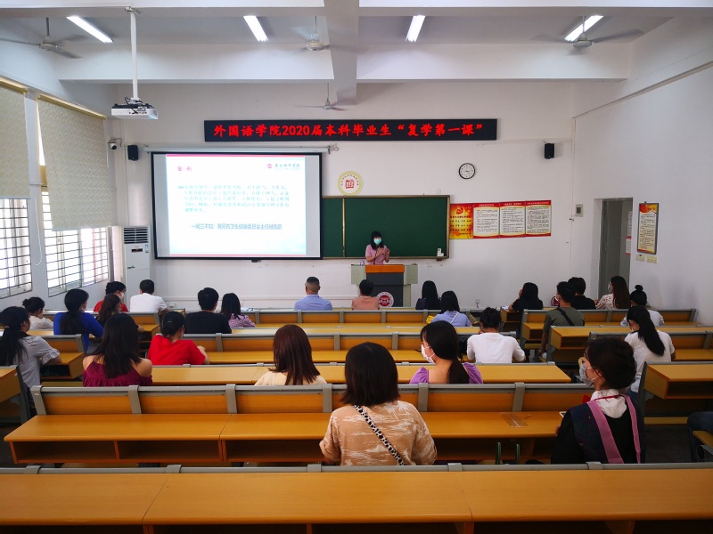 6月13日至6月15日毕业生返校期间,根据毕业生到泉时间、地点,安排工作人员对其进行点对点接站。到校之后,引导毕业生进宿舍打包行李。在此期间,学院领导、辅导员、教师逐一进入毕业生宿舍,欢迎他们平安归来,并与毕业生沟通,以此了解他们返校之后是否存在困难,让返校毕业生真切感受到“回家的温暖”。由于受疫情影响,今年毕业季之时外来车辆一律不准进入校园,考虑到学生们的行李很多,搬运起来十分不方便,学院安排工人帮毕业生搬运行李。与此同时,辅导员同快递站的工作人员与未返校学生进行远程视频,通过这种方式帮其打包行李再邮寄到家。此外,毕业生们于13日下午四点在外文楼112,来自马克思主义学院的陈亚敏副教授首先为返校毕业生上题为《疫情防控中的中国制度优势》的复学第一课。随后,蒋双霖书记、谢传生副院长对即将离开学校的毕业生们做毕业寄语,祝贺他们顺利毕业,也祝愿在新的岗位上继往开来、书写新的辉煌。