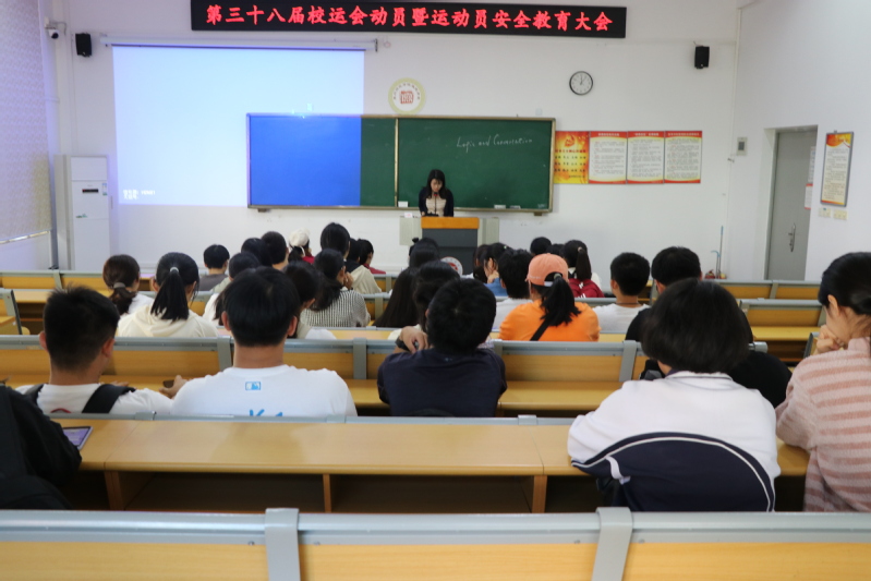 为增强运动员们的安全意识、激发参赛热情,更好地迎接即将到来的运动会。10月15日,我院于外文楼112教室召开第三十八届校运会动员暨安全教育大会。此次大会由辅导员黄婧老师主讲,我院全体运动员参加。