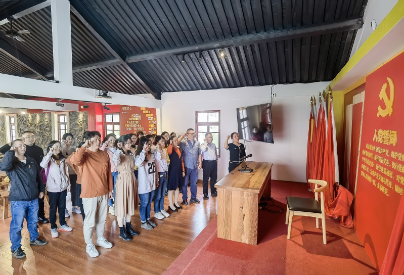 来到中共德化支部旧址党员教育基地,大家仔细参观,认真听取丁墘村党支部书记陈文能详细讲解中共德化支部成立、发展的历程以及革命先辈事迹,切身体会革命先辈为基层组织建设艰苦奋斗、英勇抗争、抛头颅洒热血的崇高奉献精神,从红色文化中汲取前进的力量,用实际行动践行党的初心和使命,全体党员并重温了入党誓词。