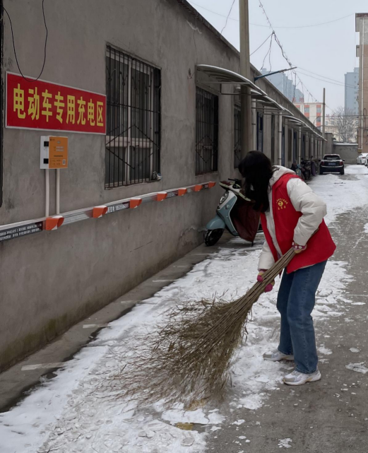 泉州师院返乡大学生上街清扫积雪。泉州师院供图