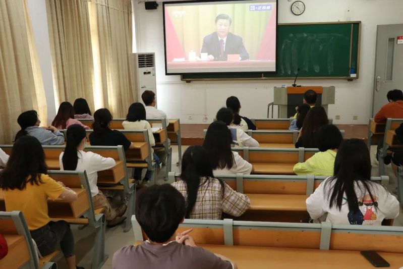 2022年5月10日上午,外国语学院组织全体团干部、学生会干部和学生代表在外文楼304收看“庆祝中国共产主义青年团成立 100 周年大会”,认真学习习近平总书记在庆祝大会上的重要讲话精神。