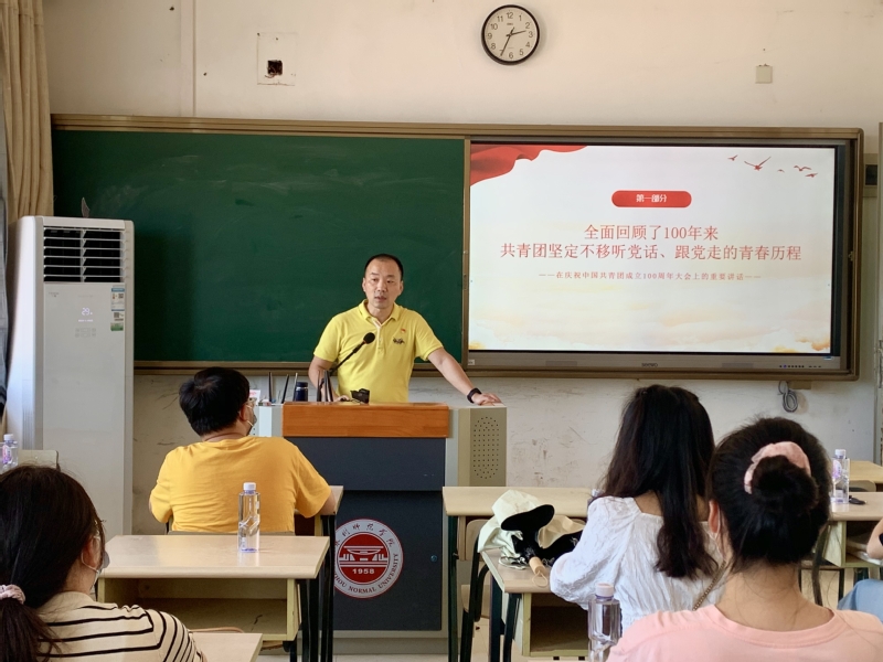 6月28日下午,在学院202教室,林伟荦以《弘扬共青团光荣传统 争做新时代的“新青年”》为题,带领同学们重温习近平总书记在共青团成立100周年大会上的重要讲话精神,并结合实际,希望同学们要加强理论学习,进一步坚定理想信念,树立正确的价值观,坚持提升自我,勇于担当作为,在新时代新征程中贡献青春力量。