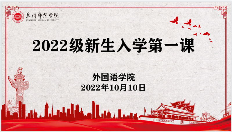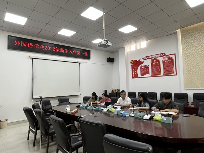 为充分贯彻学校迎新工作,做好新生入学教育,为新生扣好大学生活第一粒纽扣,2022年10月10日,外国语学院通过腾讯会议开展2022级新生入学第一课,院党委书记蒋双霖、全体辅导员以及2022级全体新生参加。
