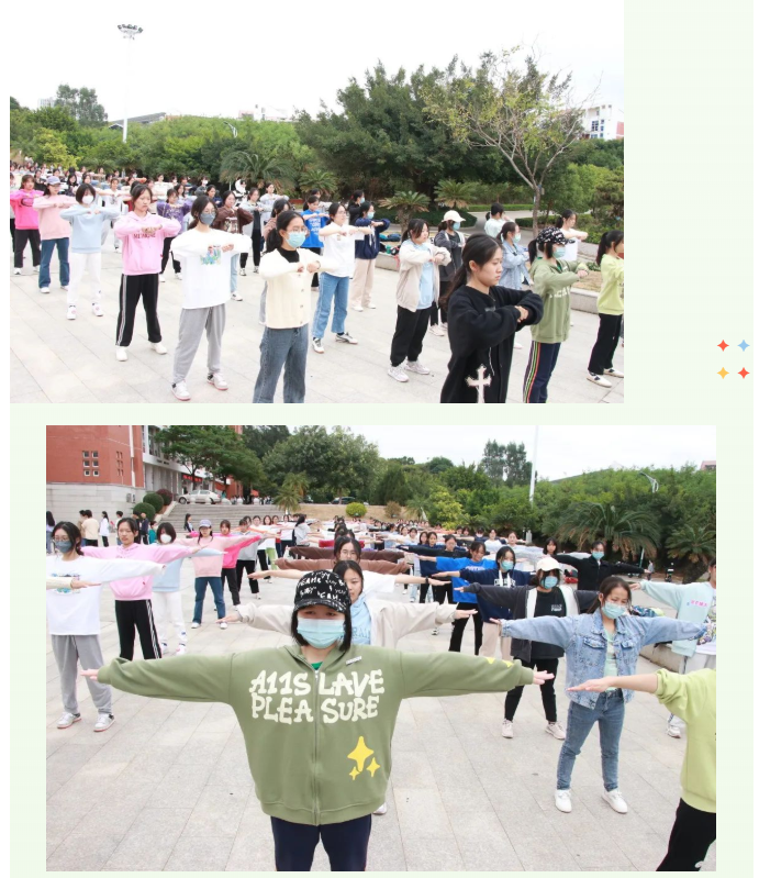 为迎接我校第四十届田径运动会,外国语学院组织2022级新生进行了广播操的选拔与训练,全面提高了学生的体质与健康水平,让学生感受运动的魅力,充分展现我院学子的青春风采。