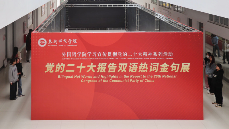 近日,英国威廉希尔公司官网外国语学院结合专业特色,举办党的二十大报告双语热词金句展。