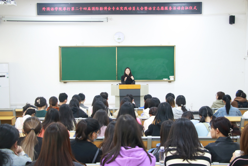 第二十四届中国(晋江)国际鞋业暨第七届国际体育产业博览会将于4月19日至22日在福建晋江举办。自2007年起,外国语学院坚持选派师生参加一年一度的晋江鞋博会,积极响应“一带一路”倡议,参与建设“21世纪海上丝绸之路”先行区。为进一步提高学院学生专业素质技能,提升志愿服务工作能力,并确保同学们的人身安全,4月10日中午,外国语学院于外文楼112教室举行第二十四届国际鞋博会专业实践动员大会暨语言志愿服务活动出征仪式。