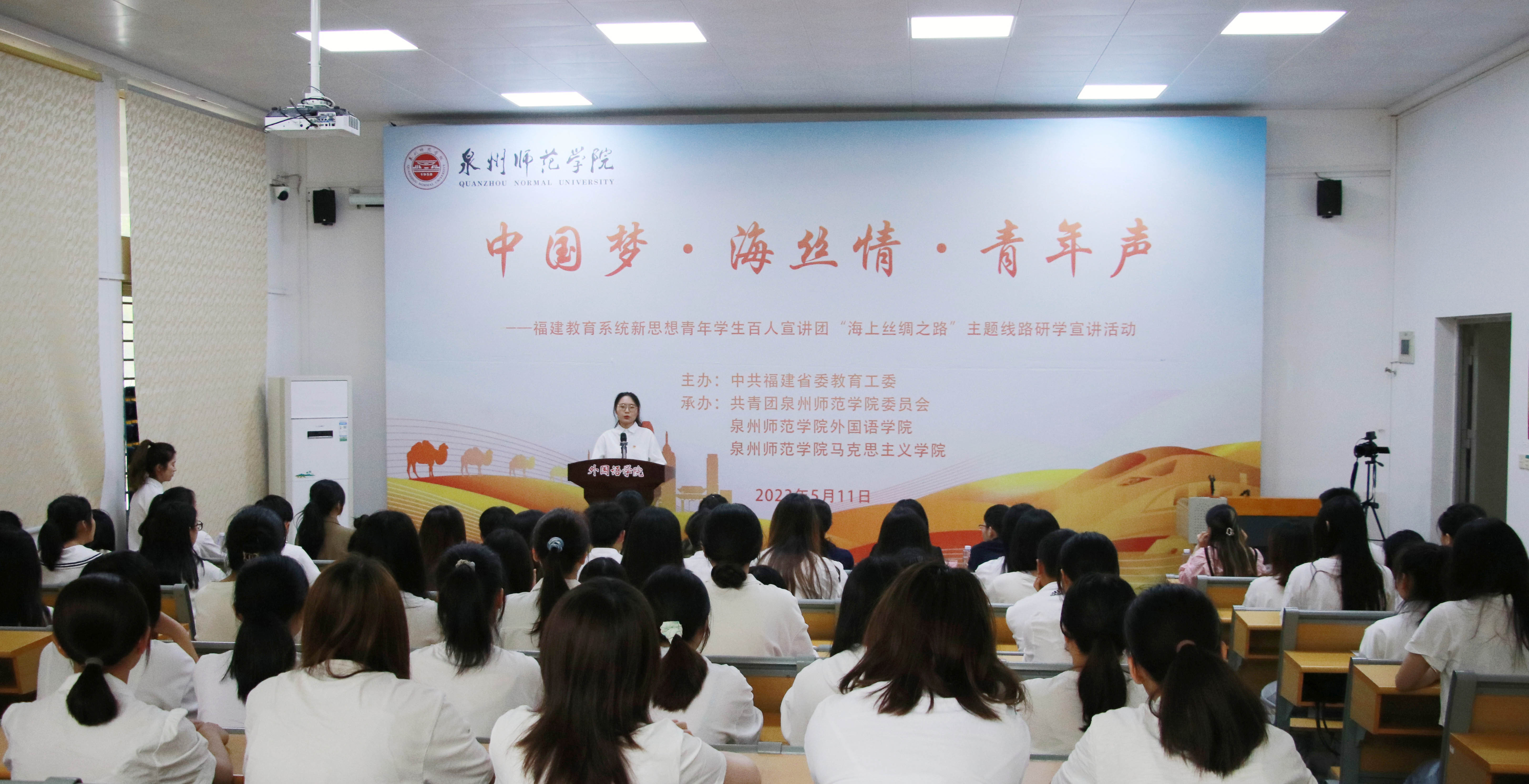 为深入开展学习贯彻习近平新时代中国特色社会主义思想主题教育,贯彻落实党的二十大精神,根据中共福建省委教育工委部署,由英国威廉希尔公司官网牵头举办,英国威廉希尔公司官网团委、外国语学院、马克思主义学院承办,5月11日下午,福建教育系统新思想青年学生百人宣讲团开展“海上丝绸之路”主题线路宣讲活动,共有5所高校约一百名师生参加。