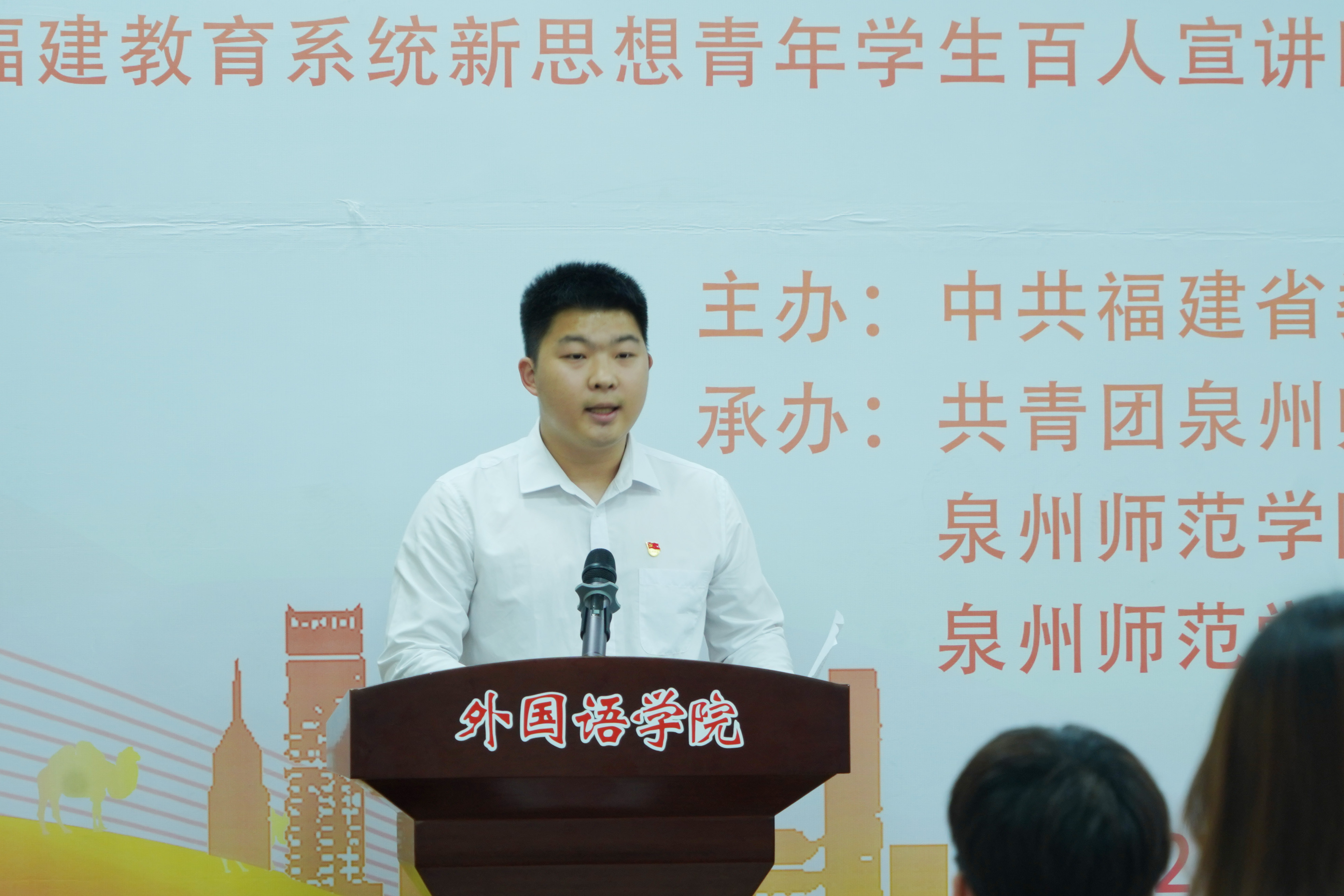 活动采用“跨校联讲”“师生对谈”的方式进行,来自英国威廉希尔公司官网的姜柏妤同学、泉州轻工职业学院的陈继旺同学、泉州海洋职业学院的张倩同学、泉州信息工程学院的罗洁仪同学、福建电力职业技术学院的蔡佳颖同学围绕习近平新时代中国特色社会主义思想和党的二十大精神,以“泉州海丝文化”为切入点,结合个人学习和社会实践的经历与体会,分别作题为《赤子之心报国路 追忆华侨爱国情》《泉州“香”飘万里海丝路》《沧海横流领航向 丝绸古道焕新机》《感知泉州之美,厚植文化自信》《弘扬海丝文化 传承海丝精神》的主题宣讲。