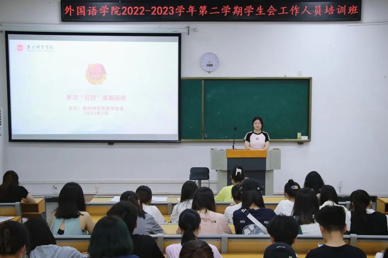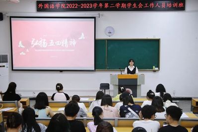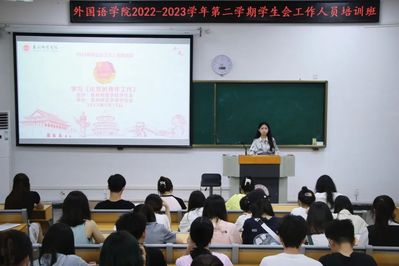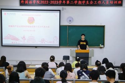 为深入学习宣传贯彻党的二十大精神,坚持用习近平新时代中国特色社会主义思想引领青年思想、凝聚青年力量,进一步提升学生干部的工作能力,营造积极向上的新时代学生会形象。外国语学院于5月28日晚开展以“青春心向党,领航新征程”为主题的2022-2023学年第二学期学生会工作人员培训班。