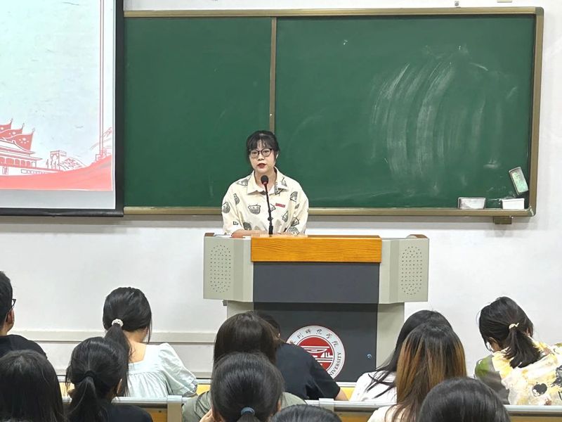 为深入学习贯彻习近平新时代中国特色社会主义思想,推动团员和青年认真学习领会党的创新理论,9月3日,外国语学院团委书记陈奕希开展了“扬中国精神 承青年担当”主题团课。