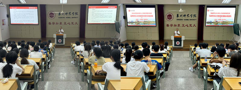 9月9日上午,外国语学院党委副书记、纪委书记林伟荦为2024级各专业新生开展网络文明与安全专题教育及马克思主义宗教观教育。
