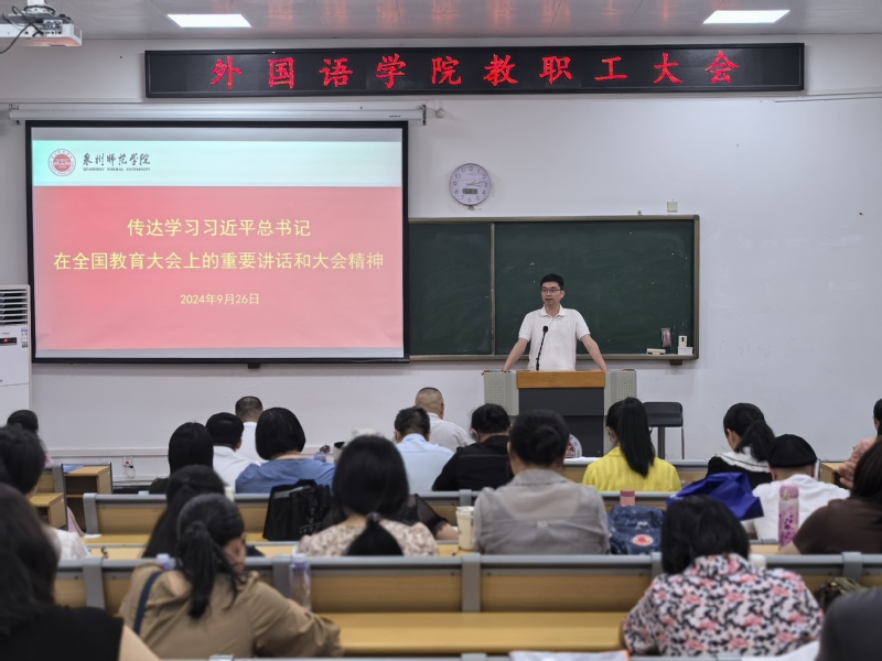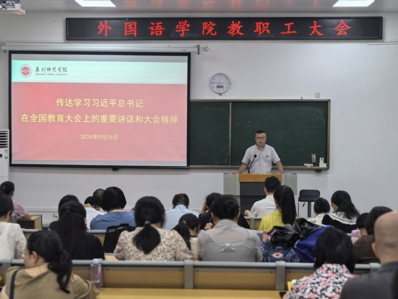 9月26日下午,外国语学院召开全院教职工政治学习会,组织学习习近平总书记在全国教育大会上的重要讲话和大会精神。