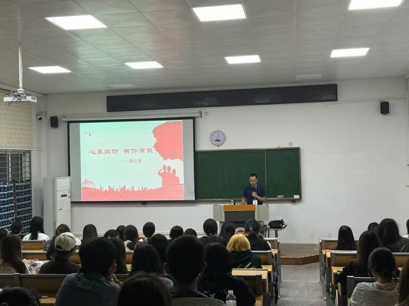 11月10日晚,外国语学院面向2024级新生开展了国防教育主题班会,由军转干部靳志强主讲。