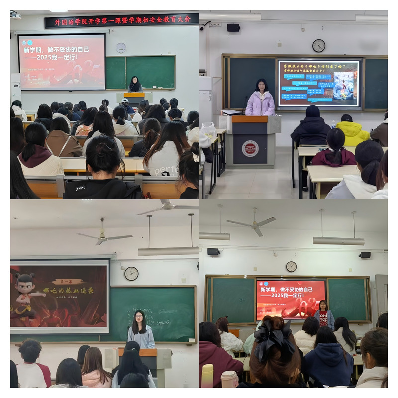 为引导学生树立新学期目标,调整心态,积极面对学习和生活中的挑战,以崭新的面貌迎接新学期的到来。2月17日-19日,外国语学院开展“开学第一课”暨安全教育主题班会。