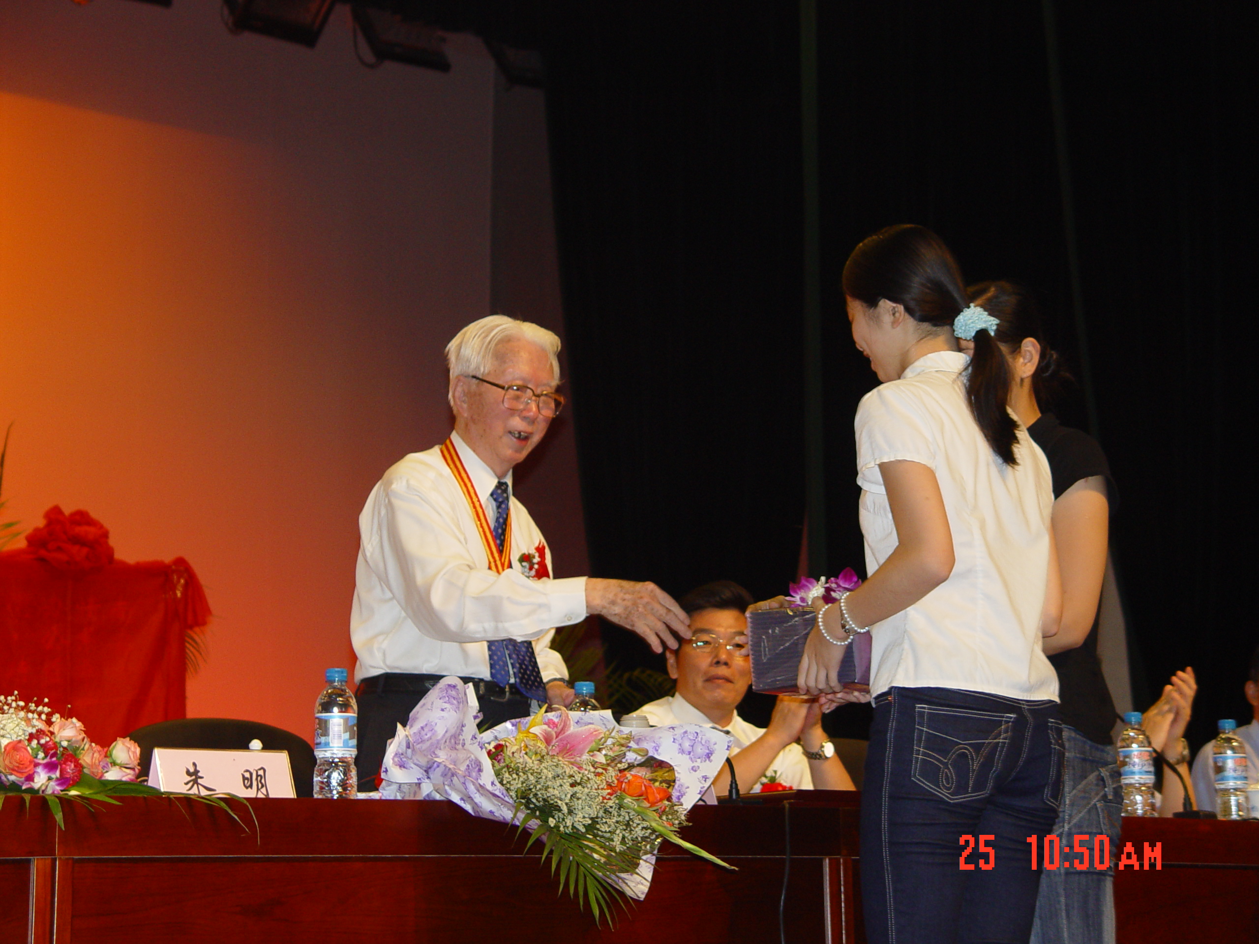 爱国侨亲陈先生结合自己的人生经历,以长者的身份和朴实的语言对到会的学生讲述为人处世的道理并向2004级毕业生赠送《德行赋》。