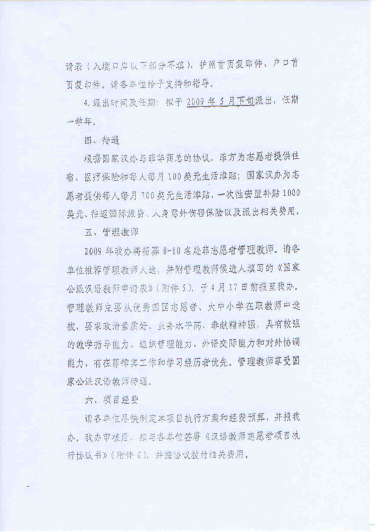 关于选拔2009年度赴菲律宾汉语教师志愿者的通知