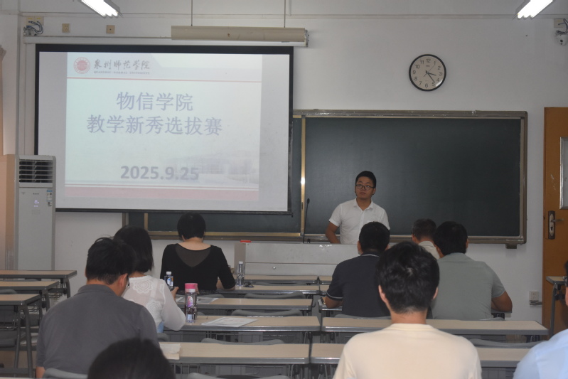 925日下午,物理与信息工程学院2025年本科教学新秀奖评选赛在理工楼401教室顺利举行。学院党委书记吴丽双、教学副院长陈木生出席活动,专家评委、参赛教师及相关工作人员参加。
