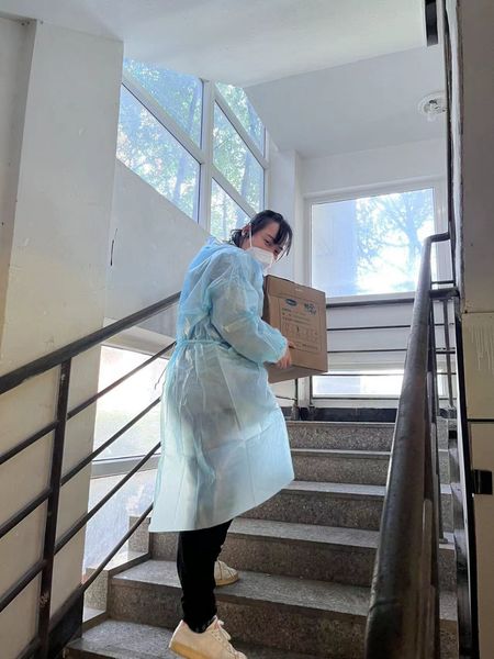 隔离病魔不隔爱,疫魔无情人有情。门外纸箱里放的小零食和水是老师们从楼下一点点运送到寝室门口的。疫情期间,学生的一天从早上睁眼上网课开始,而老师们的一天从早上送物资开始,从叫学生们起床做核酸开始。黄宇喆老师凌乱的发丝上是滴滴汗水,她手里抱着大的箱子,身上穿着防护服,口罩也遮挡不住她的笑意,这笑里充满了对学生的爱与关怀。