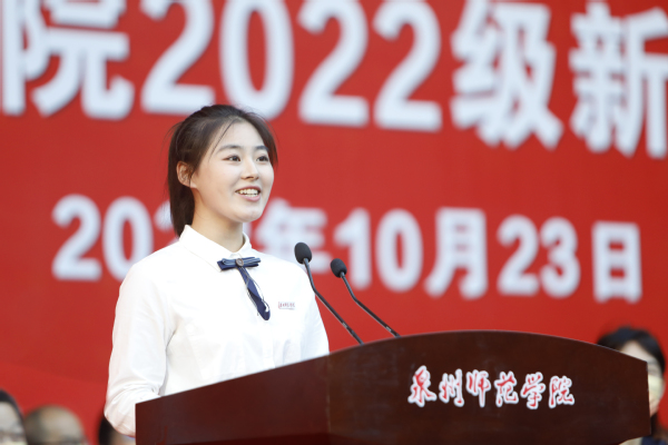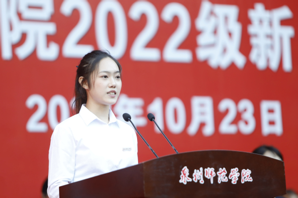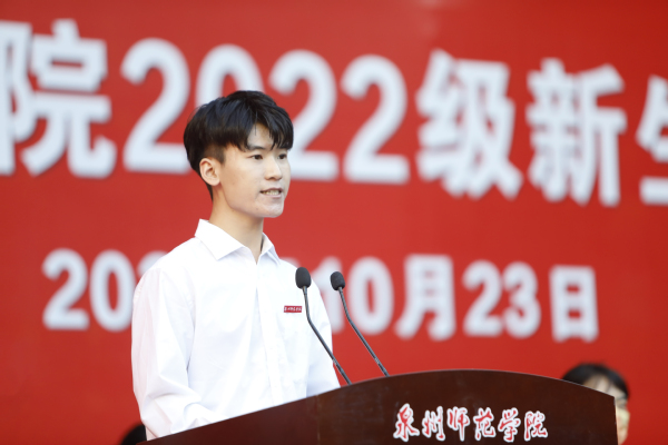 研究生新生代表、教育科学学院2022级音乐治疗王瑞锋同学在发言中表示,将带着更多的爱心和耐心,更丰富的创造力和想象力,更强烈的社会责任感和创新能力,投身所热爱的音乐治疗学习和工作,做一个品德高尚,勤学感恩的泉师人。