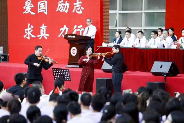 开学典礼上,学校还为8位当天生日的新生送上了生日祝福,音乐与舞蹈学院师生现场奏唱生日歌。(党委宣传部)