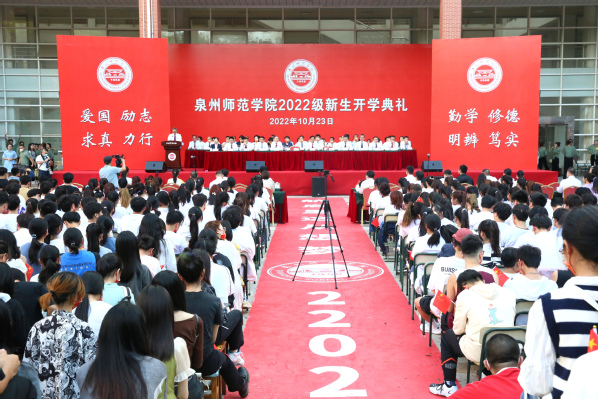 10月23日下午,我校在泉州主校区中山广场举行2022级新生开学典礼。在家校领导朱世泽、屈广清、陈亚兵、邓世章、黄江昆,机关部门负责人、二级学院党政负责人、教师代表、老生代表、5700多名2022级新生参加了典礼。开学典礼由副校长陈亚兵主持。
