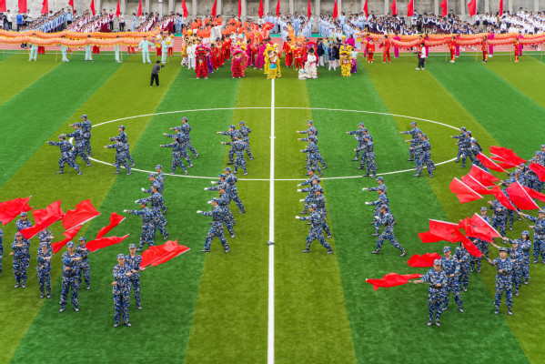开幕式结束后进行广播操比赛和文艺表演。