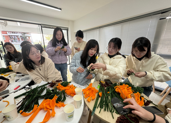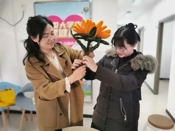 女辅导员们围绕学生日常管理、学生心理健康教育等话题展开交流。随后进行扭扭棒向日葵DIY活动,一根根色彩绚丽的扭扭棒毛条经过拧轮廓、弯折、缠绕、点胶固定等工序,三支精致的向日葵扭扭棒花束在她们手上诞生。向日葵,寓意着向阳而生,象征太阳和力量,大家捧着造型生动、颜色鲜艳的花束合影留念,感受节日气氛,释放工作压力。