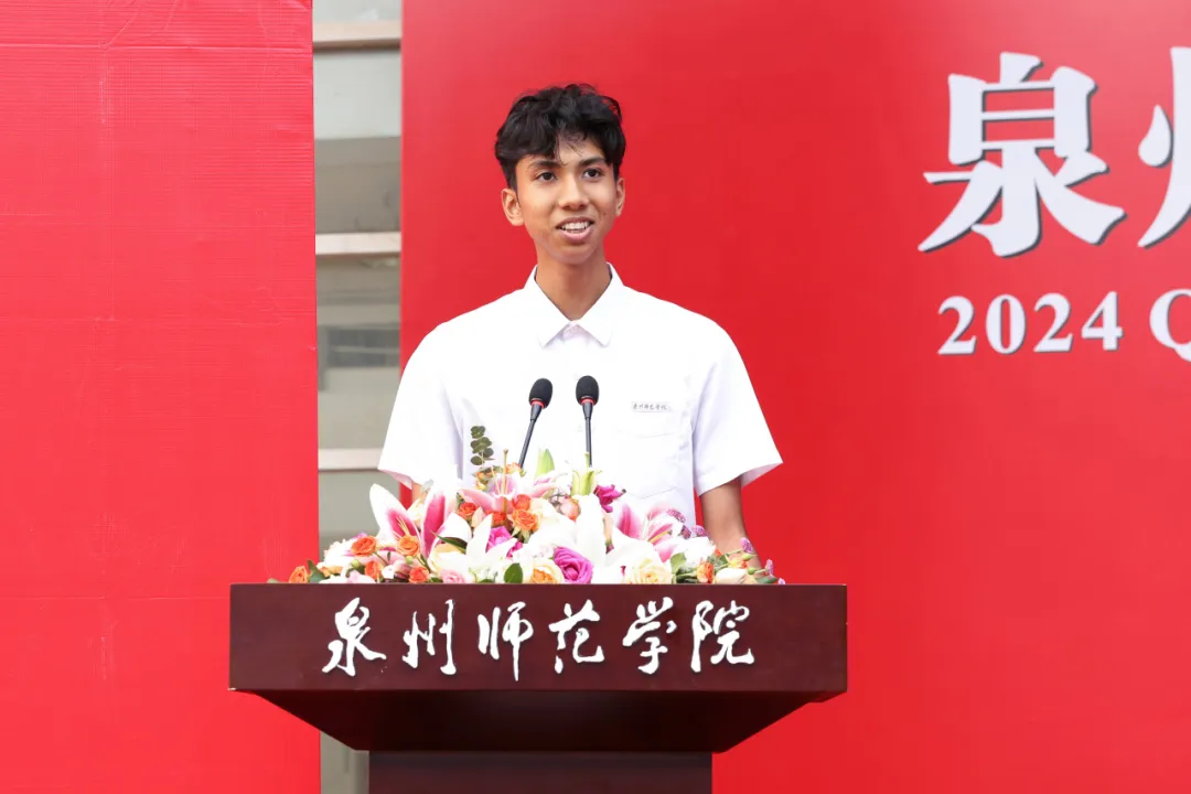 本科生新生代表、海洋与食品学院2024级食品科学与工程专业王韵涵同学表示,要孜孜不倦求学,练就过硬本领,在泉师的温暖怀抱中开“小我”之苔花,绽“大我”之芳华。
