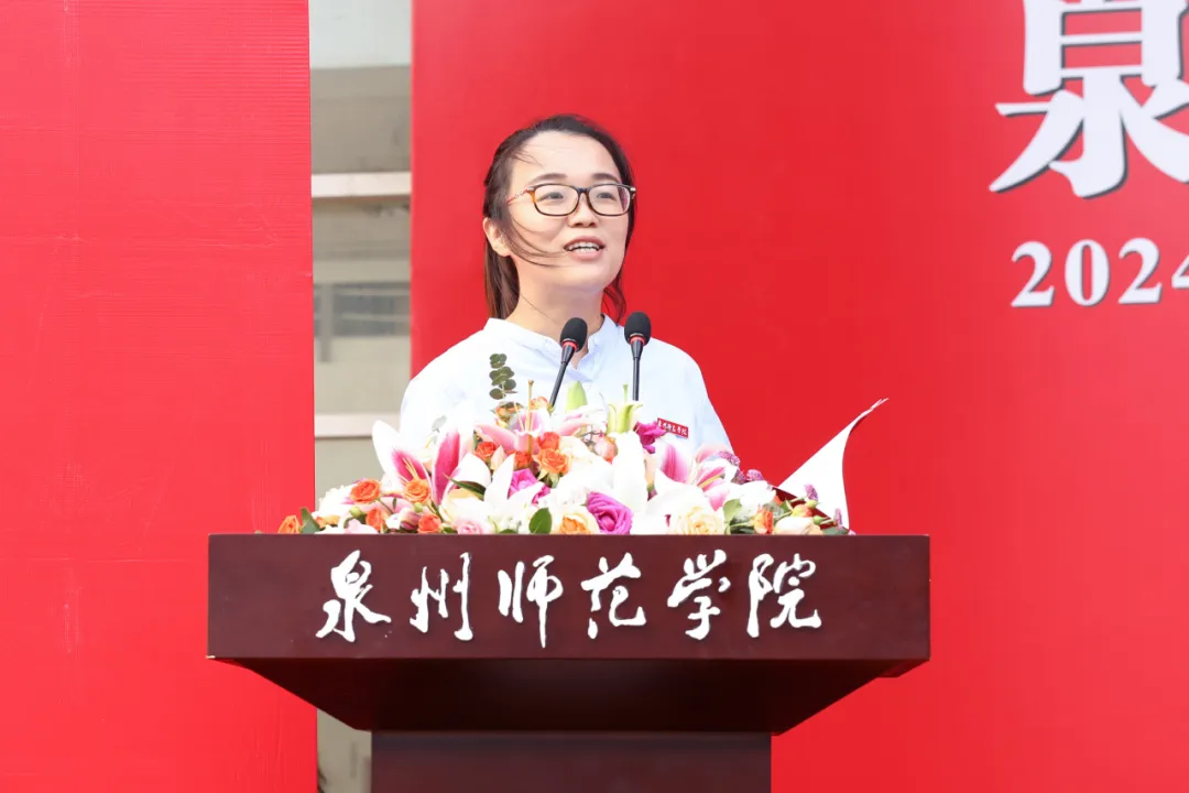 教师代表、泉州文化遗产研究院孙静博士与新生们分享了自己对“大学”的理解,她勉励同学们关照他者,关心集体;守住日常,耐住寂寞,在平淡的生活中安顿心灵,将学问的淬炼交付给时间,在泉师度过一段有意义的时光。