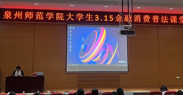 在3.15国际消费者权益日来临之际,为增强大学生金融风险防范意识,3月13日下午,我校在特教大楼第二学术报告厅举办大学生3.15金融消费普法课堂宣讲会。本次活动邀请泉州市中级人民法院刘圣楠法官、丰泽区人民法院蔡洋洋法官莅临主讲,各二级学院(系)师生代表160余人参加。宣讲会由学生工作部黄志梅老师主持。