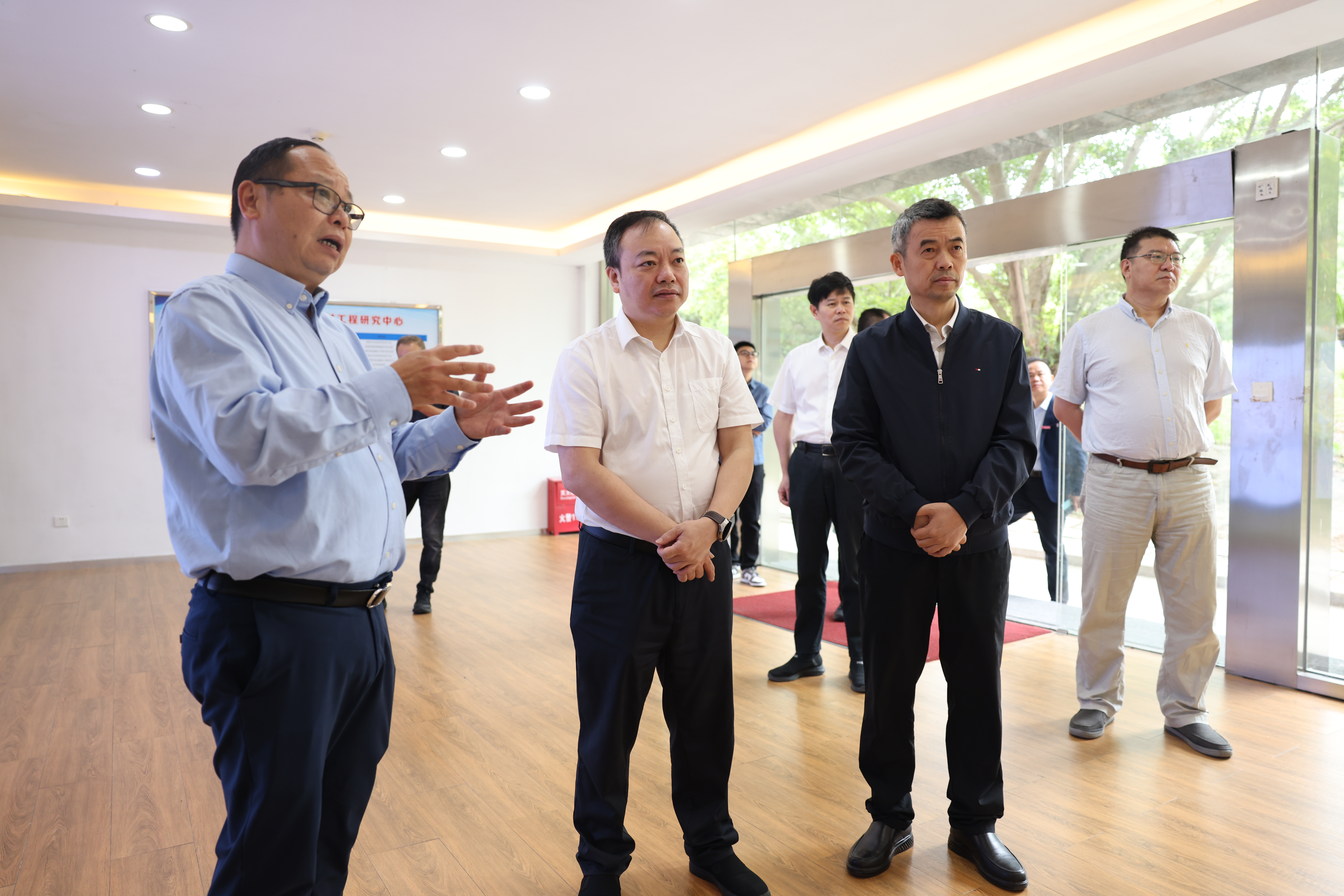 黄舒一行实地调研了光子技术研究院、福建省绿色环保功能鞋材工程研究中心等场地,全面了解学校的发展历程、办学特色及建设现状。调研组充分肯定了学校的办学成效,期望学校进一步发挥学科优势和办学特色,全面提升服务国家战略与地方经济社会发展的能力。