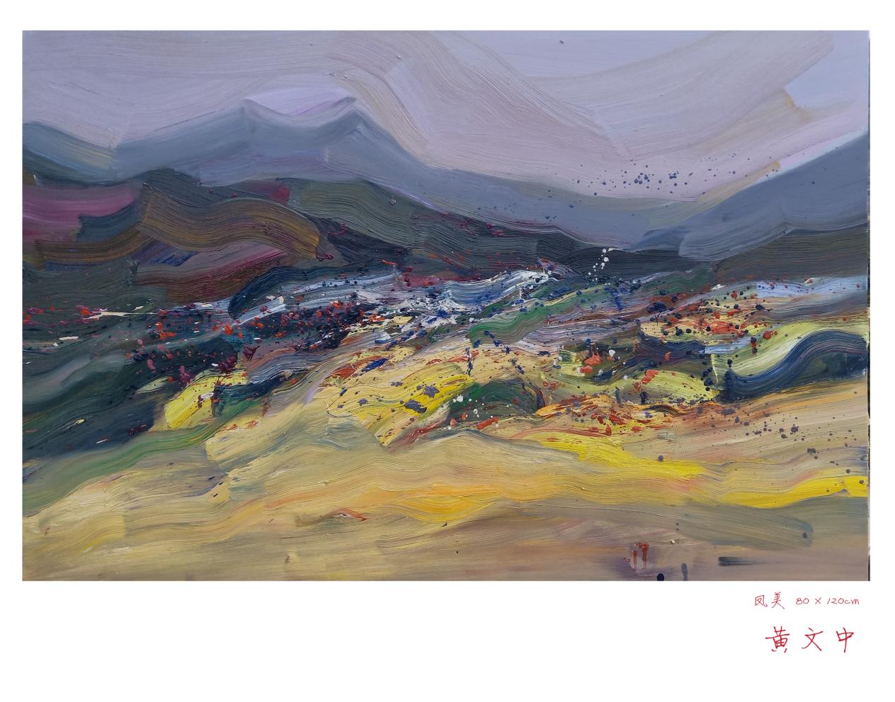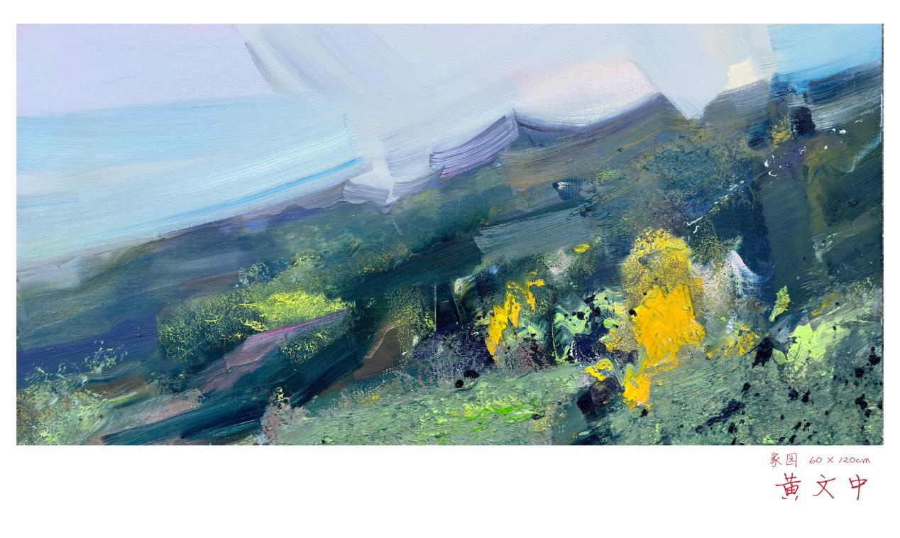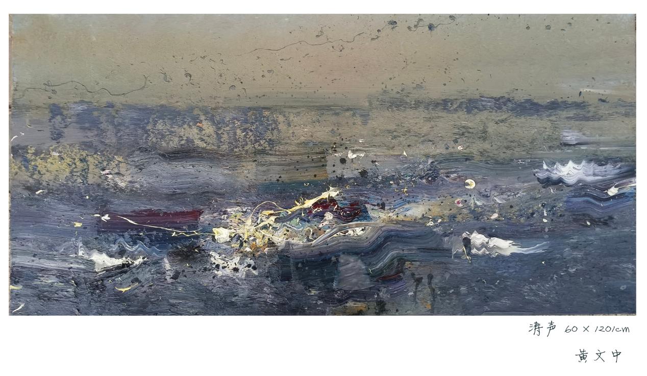黄文中在艺术创作道路上始终秉持深耕精神,其创作脉络清晰而扎实。从早期聚焦“十年一座山”的山体主题,逐步发展为“山光水色”再到“跨越山海”的山水并重。笔触表达上,由最初横平竖直、方硬为主的风格,演进为含蓄幽微、虚实相生的细腻质感;造型呈现上,在保留雄强厚重基调的同时,融入轻盈灵动的元素,最终达成“山亦是水,水亦是山”的意境融合;色彩运用上,更是突破印象派自然光影的局限,探索出超越时空维度的色彩表达体系。在艺术理念层面,黄文中始终坚信“万物有灵”,以作品为载体追求心灵的自由表达。