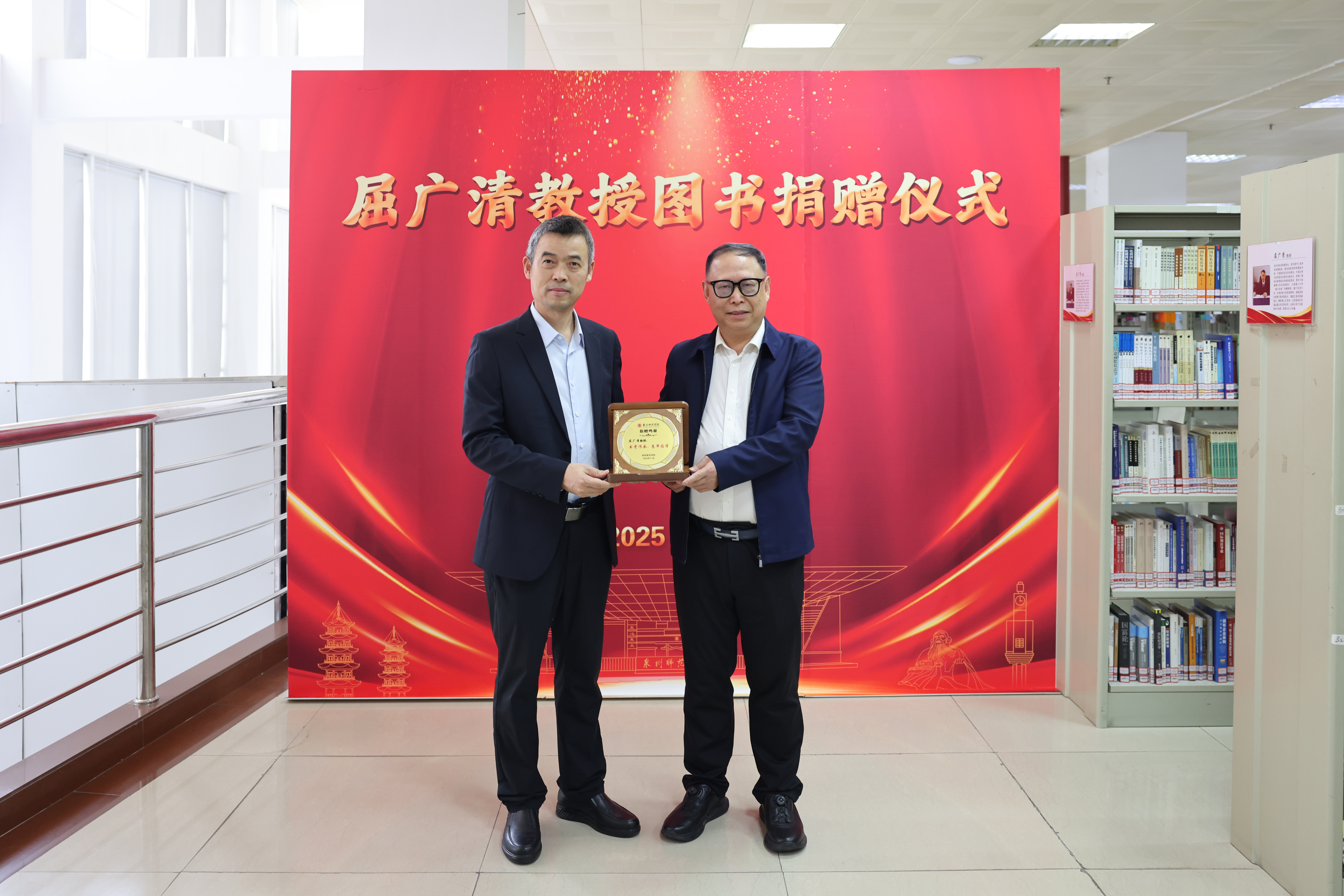日前,我校原校长屈广清教授图书捐赠仪式暨主题讲座活动在图书馆举行。校长陈昌萍、党委副书记陈晓风,党政办、离退办、图书馆等部门负责人及部分师生代表参加。捐赠仪式由陈晓风主持。