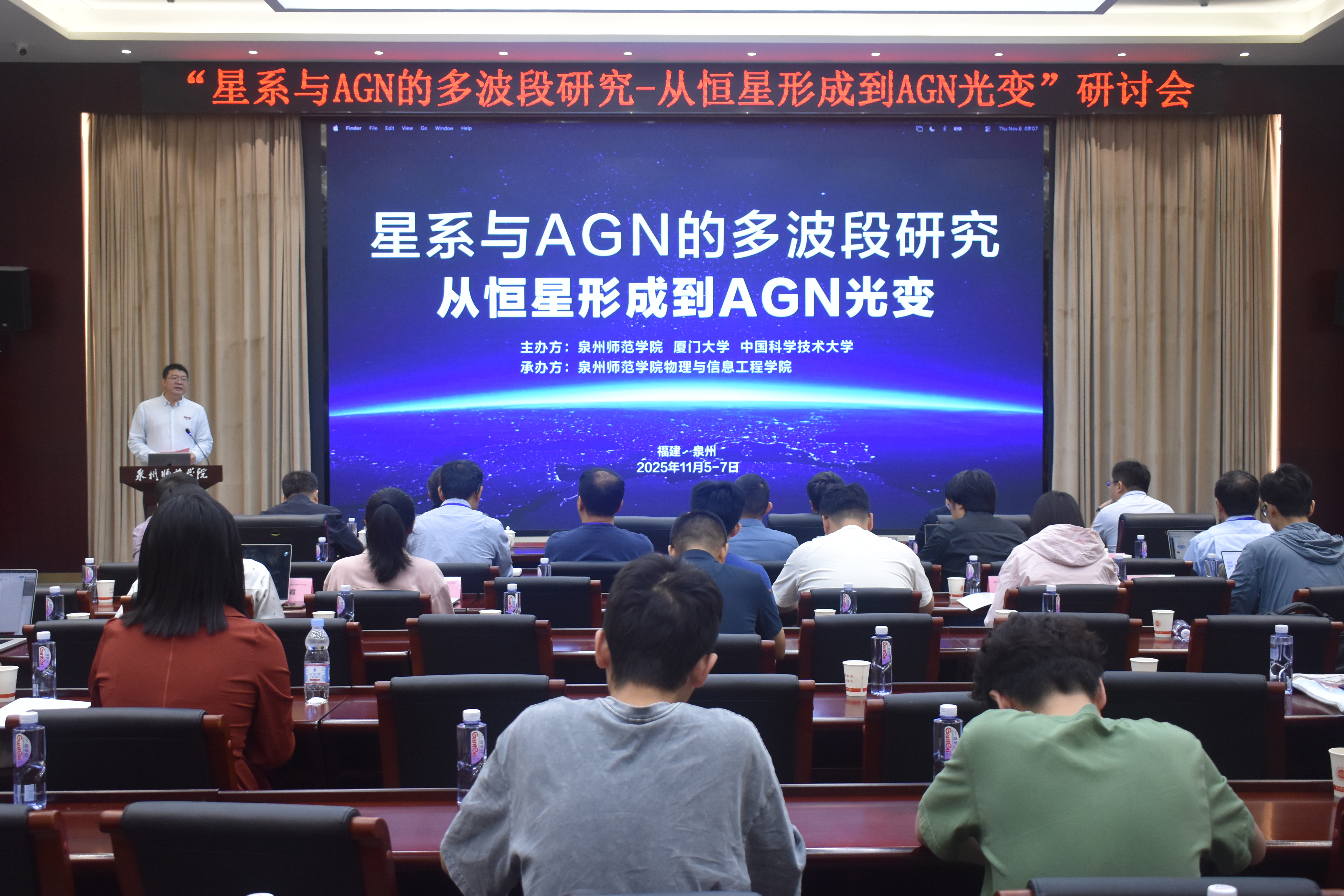 11月5日至7日,由英国威廉希尔公司官网、厦门大学、中国科学技术大学联合主办的“星系与AGN的多波段研究——从恒星形成到AGN光变”学术研讨会在泉州召开。会议汇聚了国内近百位专家学者及青年学子,围绕星系演化与超大质量黑洞活动等前沿科学问题展开深入探讨。副校长夏侯建兵出席活动并致辞。