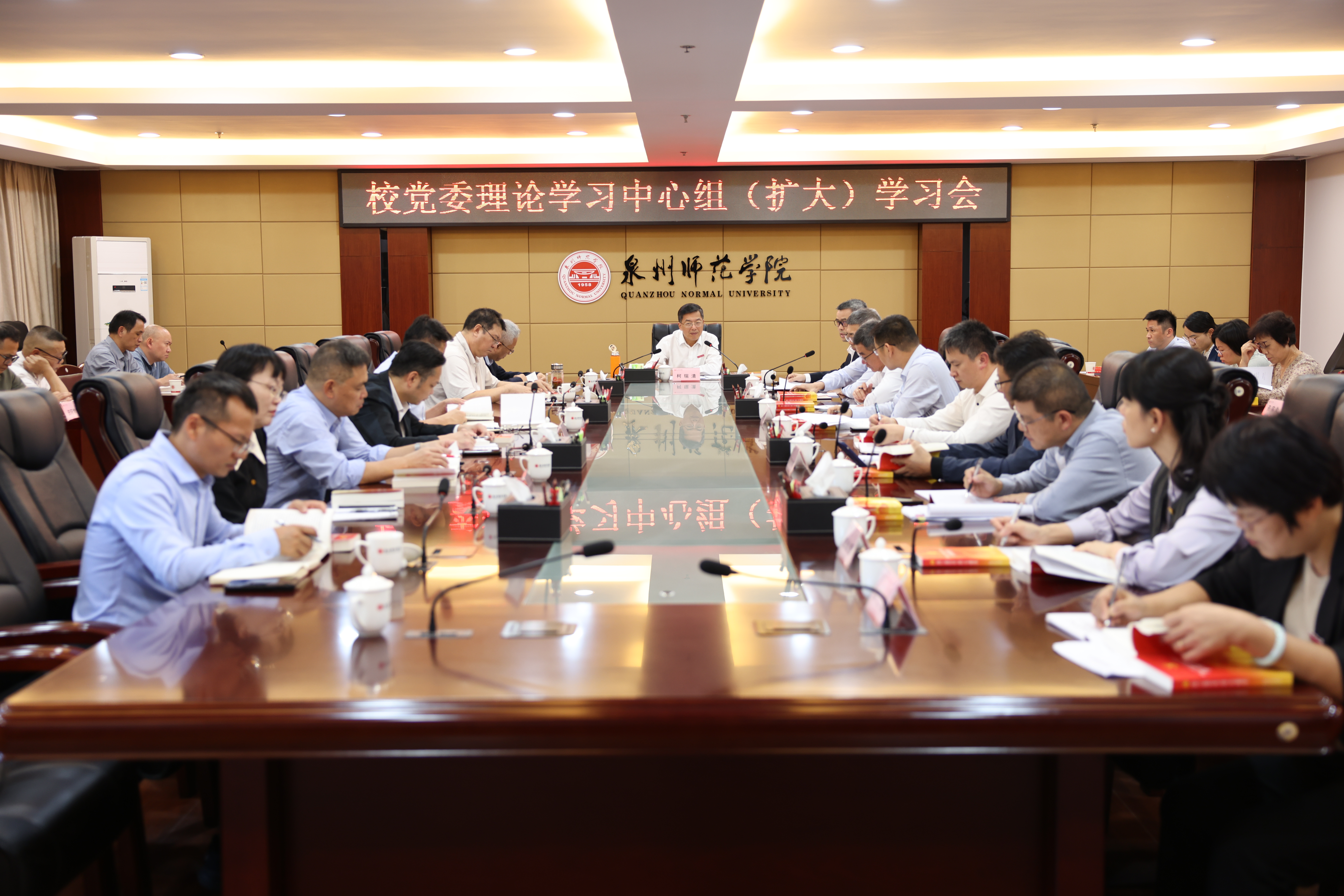 11月14日下午,学校召开党委理论学习中心组(扩大)学习会,学习贯彻党的二十届四中全会精神,集中开展专题研讨。会议由校党委书记柯瑞清主持,在家校领导、机关各部门负责人、各二级学院党政负责人参加。
