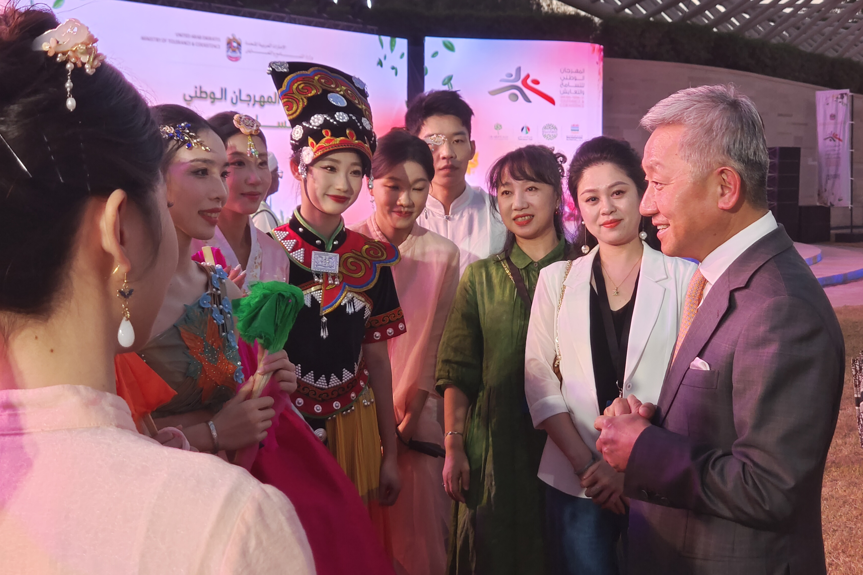 近日,我校师生应阿联酋包容与共存部、阿联酋中国文化中心邀请,前往首都阿布扎比参加“阿联酋国家包容与共存节”。本次活动,中国受邀担任主宾国,我校作为中国主宾国唯一受邀的展演团队,在开幕式及两场专场演出中精彩亮相。师生们呈现了融合民族特色与地域风情的音乐、舞蹈及歌舞融合类节目,表演反响热烈,赢得现场观众一致好评。阿联酋包容与共存部部长谢赫·纳哈扬亲王、中国驻阿联酋大使张益明大使对演出给予高度评价。