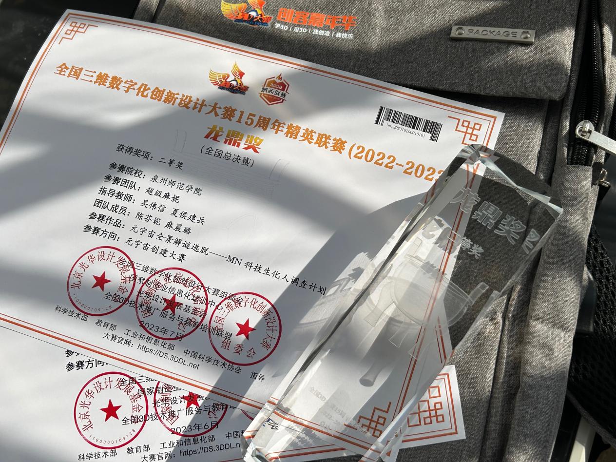 近日,2022-2023全国3D大赛15周年精英联赛国赛作品评审工作圆满结束我院广播电视领域2022数字媒体技术与艺术方向艺术硕士陈芬妮、麻晨璐同学组建超级麻妮”团队参赛作品“元宇宙解谜逃脱:MN科技生化人调查计划”顺利通过初赛、省赛,以特等奖的成绩成功晋级全国决赛,荣获元宇宙赛道国家级等奖。