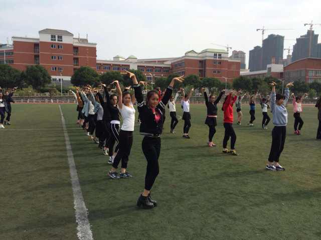 同学们利用中午休息时间训练广播操表演